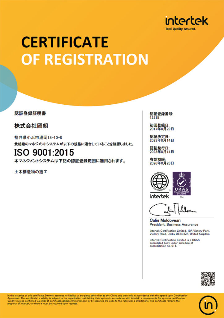 昭和35年7月14日 | 岡組 創業、知事登録(へ)1663 |